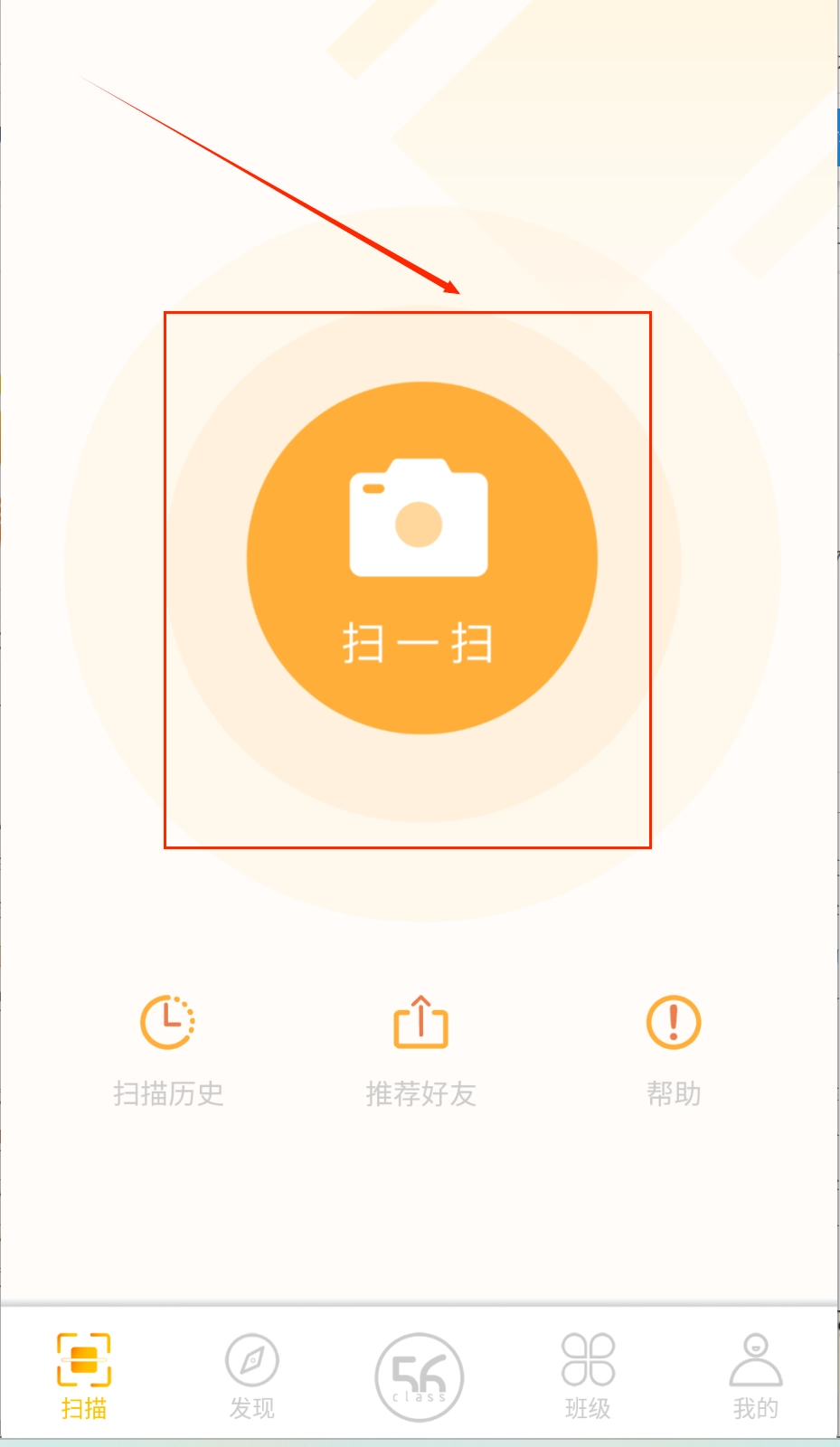 1. 打开之后,点击首页橙色的“扫一扫”按钮,将其对准作业或教材内容进行扫描,这时系统会自动识别并生成电子版,便于您随时查看。