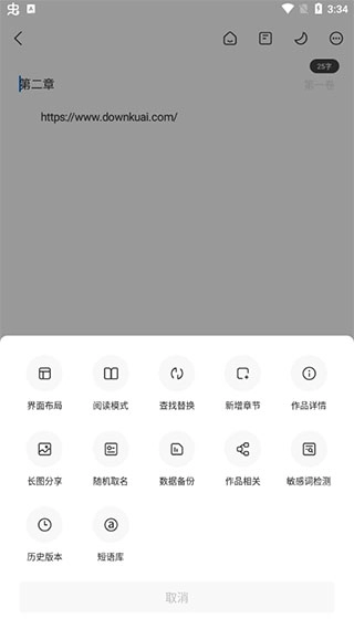 6、此外,在进行写作时,大家还能够使用添加图片、章节备份等多种功能。