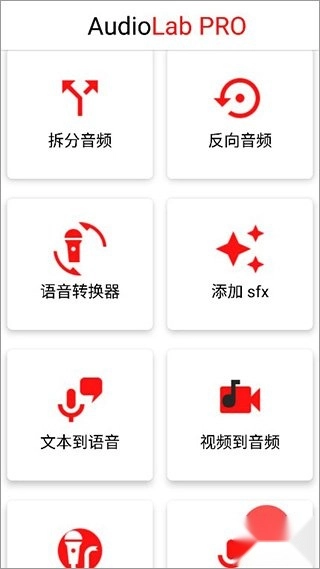 进入主界面后,能看到拆分音频、反向音频、添加SFX(特殊音效)等各类功能。