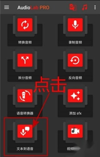 启动你设备上安装的免费版AudioLab音频编辑工具,待主界面加载完成后,找到并点击“文本转语音”功能选项。