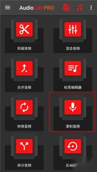 启动你安装好的免费版AudioLab音频编辑工具,进入主界面后找到并点击“录制音频”选项。