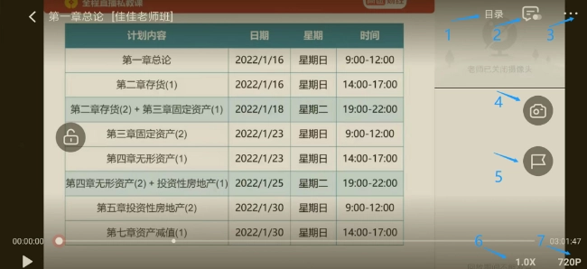 上课界面右侧可截图保存重点,或点击小红旗标记