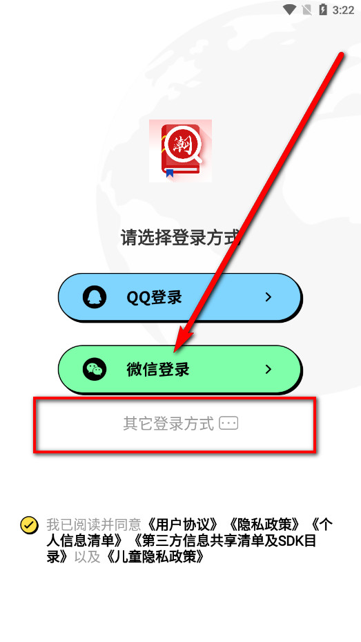 1、可选择登录方式(QQ、微信),也可以点击【其它登录方式】。