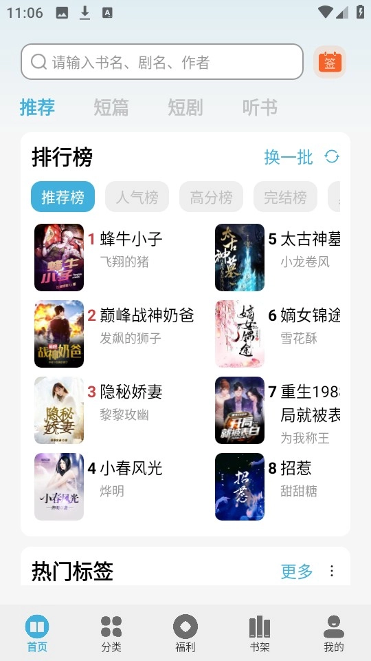 2、搜书精灵该软件没有广告,没有付费内容,把自己喜欢的小说加到书架上。