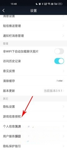 4、进入系统设置后,向下滚动至其他分类,从中找到“游戏信息授权”选项。