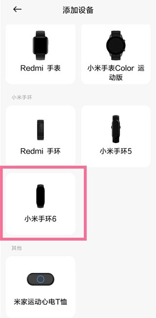 进入我的界面,点击添加设备,选择小米手环型号。