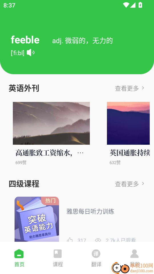 实用口语是一款集英语知识教学、热门外刊阅读、优质文章话题与精准识别翻译功能于一体的应用软件。这里的四级英语课程资源极为丰富,能全方位满足用户的英语学习需求,让大家获取更多高质量英语读物,有效扩充词汇储备,学习到优质的英语知识与辅导内容。此外,实用口语手机版还包含大量进阶英语教学内容,优质英语文章阅读及语法学习资源一应俱全。对这款软件感兴趣的用户,欢迎直接到本站体验。