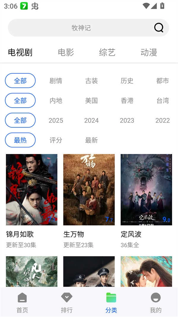我们还能借助分类功能查找内地、美国、香港、台湾等多个地区的影视资源。