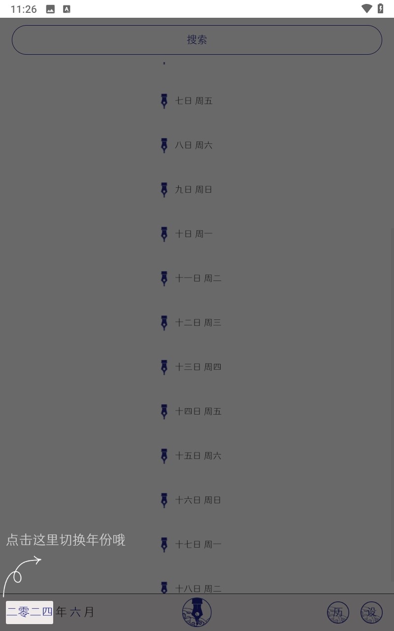 4、主页右下方历可以查看日记历程