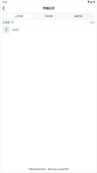 传输管理页面支持实时查看所有任务的进度,包含当前状态以及完成百分比。