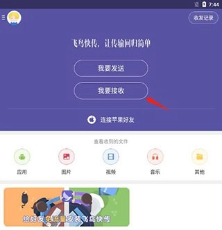 2、若选择“我要发送”,接着在其中挑选要发送的文件、应用、图片、视频、音乐等内容。