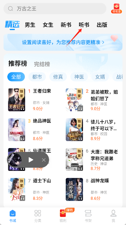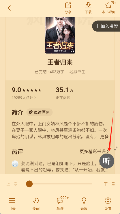 开始听书的操作如下:进入你选中的小说详情页后,找到“播放”按钮并点击,就能开启听书模式了。