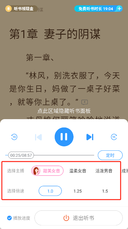 在开始听书前,你可以先对听书的相关信息进行设置,比如调整播放速度、选择喜欢的音色等。等这些都设置妥当后,就能畅快地收听小说了。