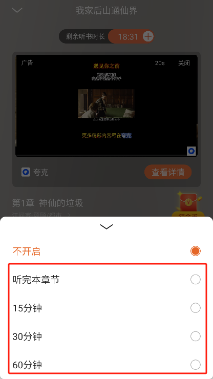 定时关闭:开启定时关闭功能后,系统会在设定的时间点自动停止播放,非常适合睡前听书时使用。