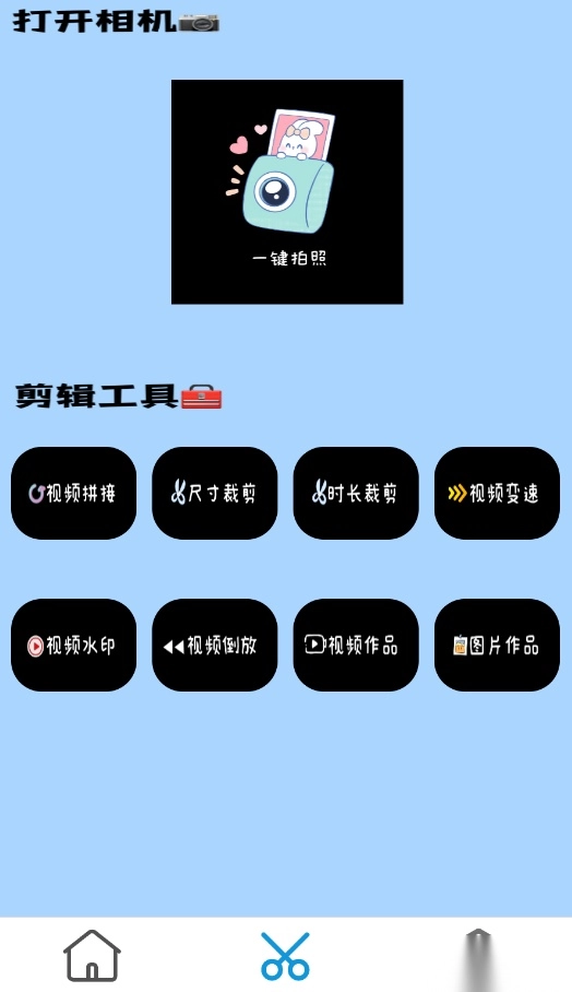 2. 用户可以利用的基础工具进行图片处理和视频剪辑,同时还能通过其自带的拍摄功能直接获取素材。