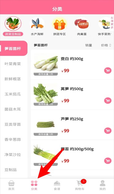 3. 分类页面清晰呈现商品的各类别,不仅支持分区筛选,还能实现快速下单,让购物流程变得更加高效且直观。