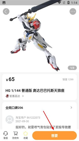 4、在商品详情页点击【想要】,等待补货购买。