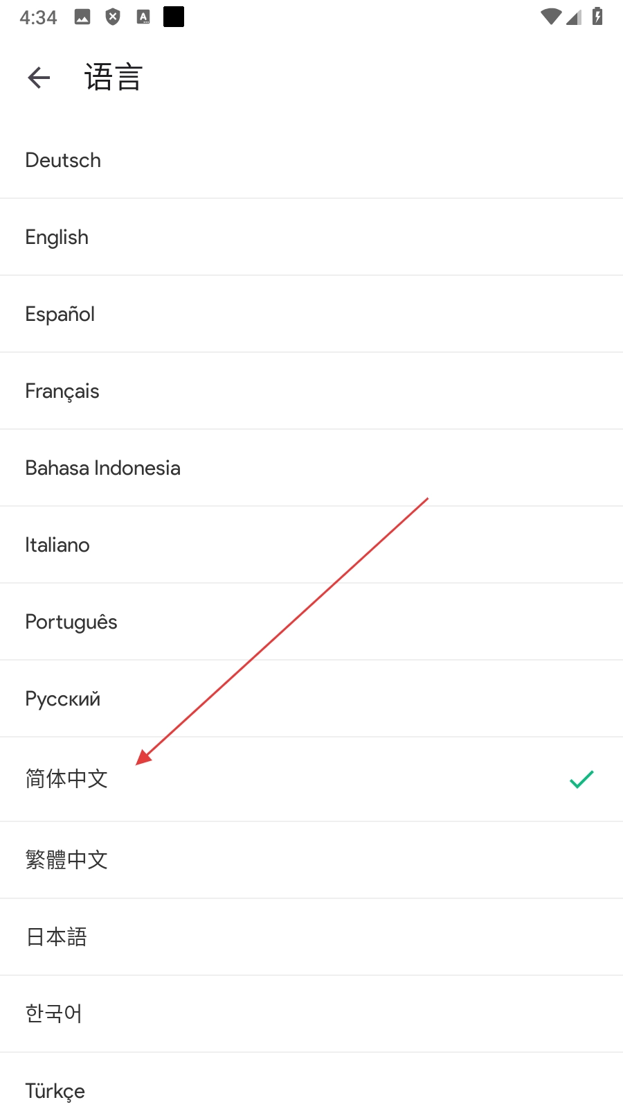 4、在语言选择页面点击【简体中文】选项,就能完成中文语言的设置。