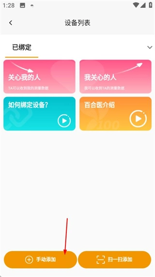 3、在设备列表页面选择添加设备的方式,进入设备扫描页面。