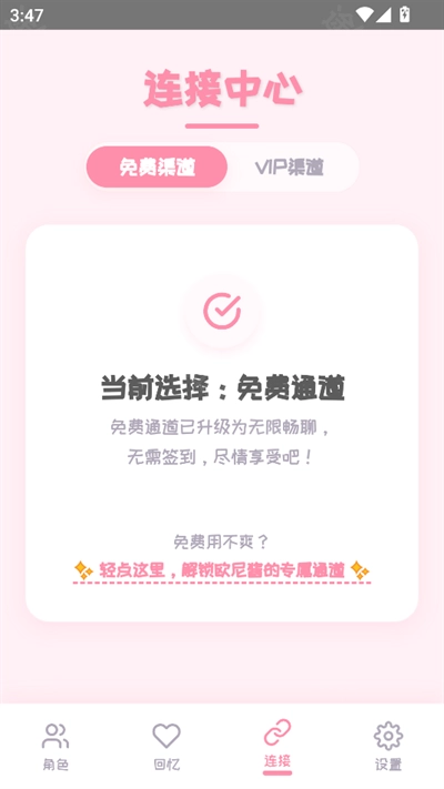 3、二次元角色的设定搭配友好的交互方式,营造出毫无压力的聊天环境。