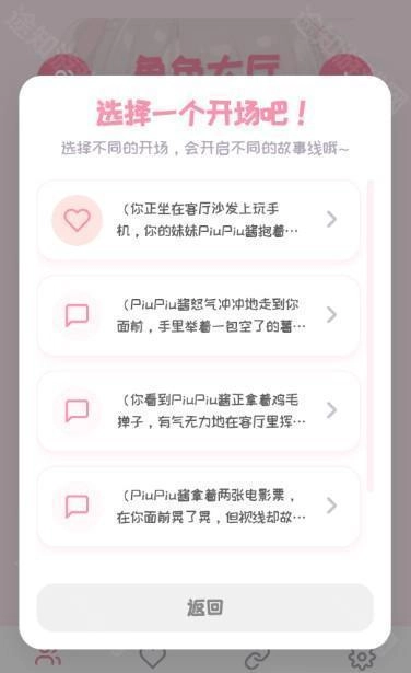 4、选择喜欢的角色点击封面,可以选择一个开场聊天。