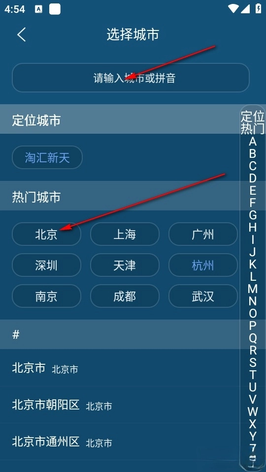 在首页点击左上角,可查看当前已添加的城市;也能直接点击上方的添加按钮进行操作。