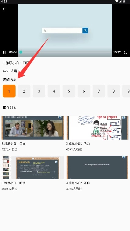 4、在视频课程页面可通过选集功能切换不同章节内容,自由选择需要学习的内容部分。