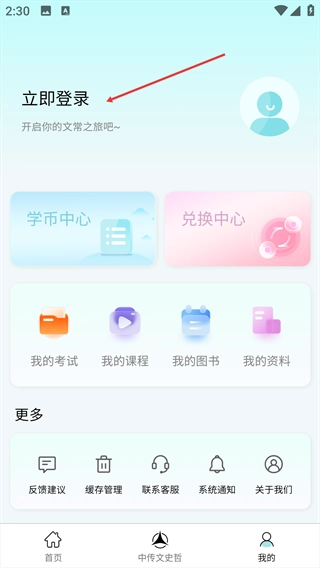 2、在【我的】页面,点击“立即登录”区域。