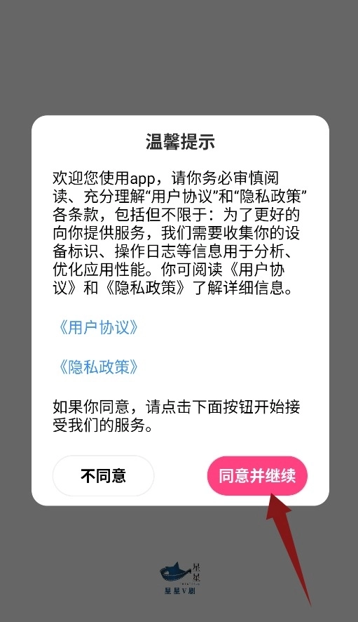 首次打开应用时,需要点击确认温馨提示,同意相关内容后才能进入主界面。