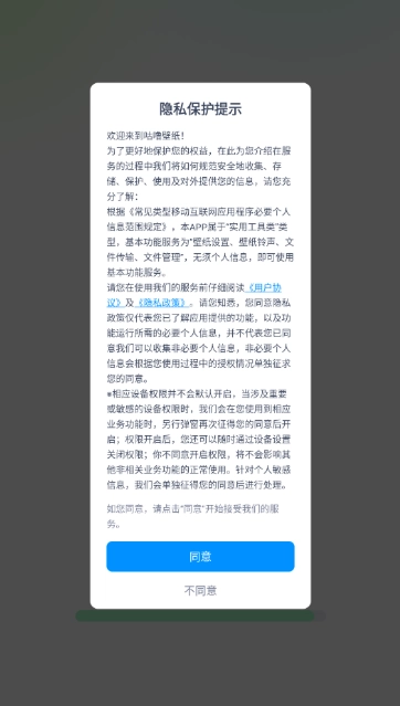 1、启动软件,仔细阅读隐私保护提示内容后,点击“同意”按钮进入相应页面。
