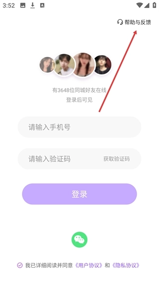 1、进入登录界面后,点击右上角的“帮助与反馈”选项,即可进入意见反馈操作页面。