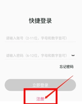 输入任意账号与密码,点击注册按钮。